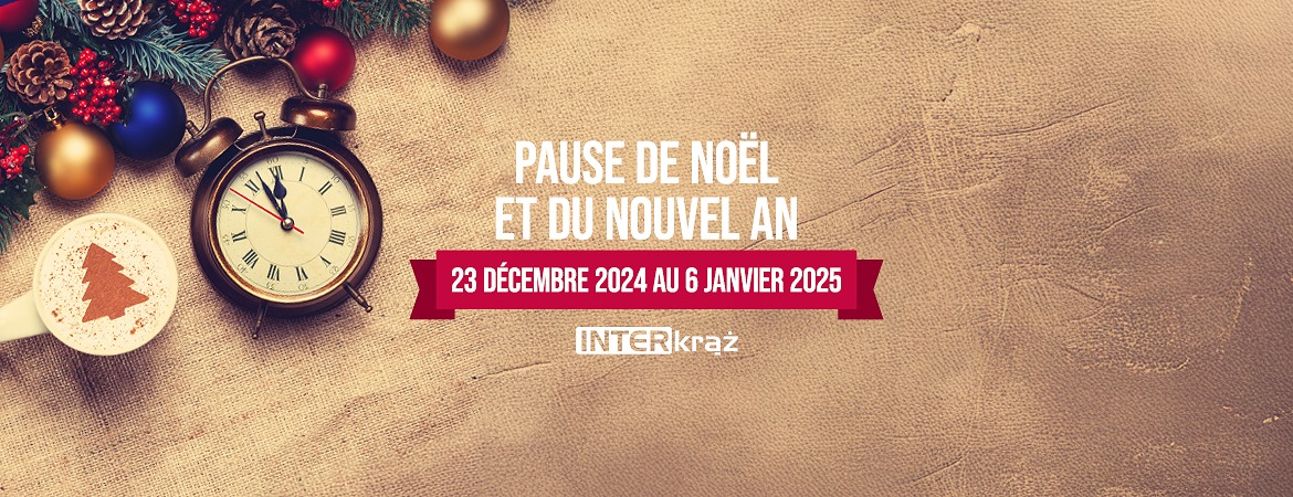 Nous souhaitons vous informer de la fermeture de notre entreprise pour les vacances de Noël et de fin d'année du 23 décembre 2024 au 6 janvier 2025. Pendant cette période, nous ne traiterons pas les commandes.